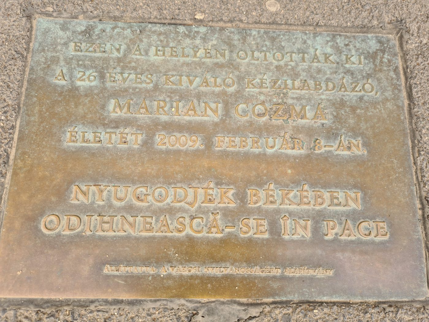 Când ajungi în fața localului nimic nu pare nelalocul lui. Totul se schimbă când vezi pe trotuarul de lângă pub o placă comemorativă cu numele lui Marian Cozma, chiar în locul unde inima handbalului românesc a fost înjunghiată.