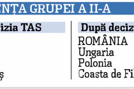 Decizia TAS produce efecte asupra turneelor de calificare la JO, IHF trebuind să o reintroducă pe Coreea de Sud în prelimina- riile feminine. Astfel, la București ar putea ajunge Ungaria, în locul Croației, conform algoritmului stabilit înainte de CM.