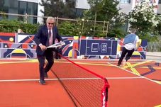Ilie nu se dezminte. Rămâne și astăzi jucătorul teribil de odinioară. „Nasty” a întrat pe un mini teren de tenis, îmbrăcat la costum și cu cravată unde a schimbat câteva mingi, în stilul său caracteristic.