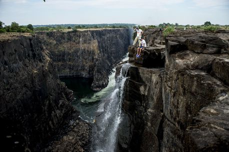 Duque și Paredes nu au stat pe gânduri când au aflat de Cascada Victoria. Trebuia sa o încerce… De aceea, au urcat până la 30 de metri, într-un loc numit Mosi-oa-Tunya (Fumul care te fulgeră) și au sărit în apa învolburată. De obicei ei sar de la o înălțime cuprinsă între 26,5 si 28 de metri în competiția mondială Red Bull Cliff Diving.