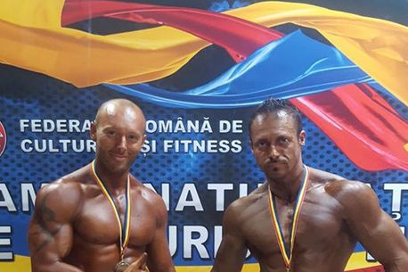Adrian Niculcea alături de Andrei Pop în cadrul Campionatului Național de Culturism pentru vârsta a doua de la Tg-Mureș