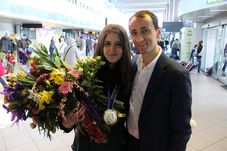 Alexandra a fost primită cu flori la întoarcerea de la Mondialele de la Tașkent FOTO: FRScrimă