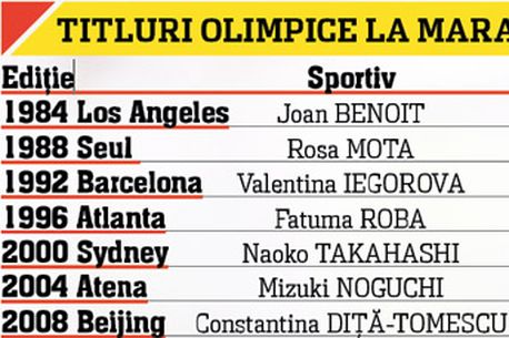 La 38 de ani, Constantina Diță-Tomescu e cea mai în vârstă campioană din istoria maratonului olimpic. Găina bătrână face ciorba bună! Dintre cele 82 de concurente aliniate la start, doar două au fost mai în vârstă decât Constantina Diță. Și totuși, Pușa a cucerit lumea. Aurul se măsoară în minute și secunde. Dar anii? Anii, care trec? Aproape că nu contează, în cazul româncei de 38 de ani, care a spart o barieră fiziologică greu de închipuit. De o rezistență și vitalitate inimaginabilă, a sfidat scurgerea timpului și a învins istoria.