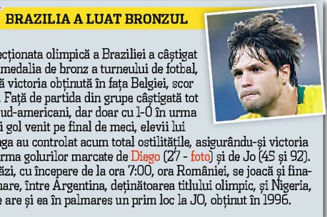 Starul brazilian a auzit de performanțele României în gimnastică și a vorbit cu Drăgulescu. De când s-a mutat cu meciurile la Beijing, naționala de fotbal a Braziliei a renunțat la hotelurile de lux și s-a cazat chiar în Satul Olimpic.Inclusiv cu supervedeta echipei, Ronaldinho, care are nevoie aici, în China, de o adevărată armată de gărzi de corp care să îl protejeze de elanul fanilor exaltați. Nici chiar în Satul Olimpic simpaticul brazilian nu renunță la escortă, chiar dacă aici aceasta este mai discretă.