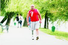 „Faptul că îți pierzi un picior nu este un sfârșit de lume. Este greu, într-adevăr, să treci peste asta, dar în esență tu rămâi același om, cu aceleași dorințe și idealuri”, trasează Iulian Șerban începutul discuției. Mergem agale pe una dintre aleile Parcului Herăstrău și cei câțiva trecători privesc curioși spre muntele de om. Perechea de pantaloni scurți lasă la vedere în locul piciorului drept o proteză ce se pierde mult deasupra genunchiului și pe piciorul stâng o cicatrice de jumătate de palmă ce pornește de la gleznă și se oprește sus, pe șold. Kaiacistul nu pare deranjat de privirile curioase și își continuă pe același ton liniștit povestea. „Nu pot merge foarte mult pentru că proteza îmi mai face răni. Dacă e, pot să duc două găleți de apă, dintr-o parte în alta, numai să nu fie distanța foarte mare”, spune el, în timp ce caută din priviri o bancă. Următoarea oprire a discuției noastre.