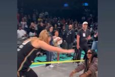 Gimnasta a fost oaspete de onoare la partida în cauză. Când s-a văzut cu românca Sabrina Ionescu, cele două și-au arătat respectul pe care și-l poartă, făcând plecăciuni una în fața celeilalte.