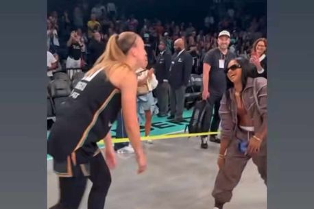 Sabrina Ionescu (26 de ani), baschetbalistă în WNBA, s-a întâlnit cu Jordan Chiles (23 de ani) la meciul disputat de New York Liberty și Las Vegas Aces în campionatul de baschet feminin din SUA.