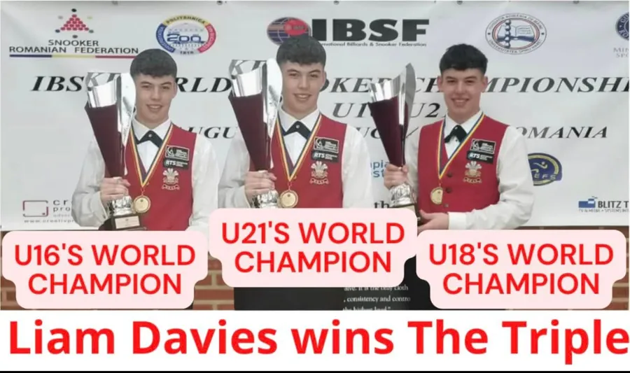 ”Pentru mine, aceste zile au fost de necrezut. Sunt și eu șocat în sensul bun, pentru că am realizat un record care nu a mai fost atins până acum și nici nu se știe dacă va mai fi atins, anume, câștigarea tuturor titlurilor de campion mondial la juniori într-o singură competiție. Încă aștept să mă trezesc din acest vis frumos. București este un loc extraordinar, vremea a fost foarte caldă iar Universitatea Politehnică din București, o gazdă admirabilă. Pot spune că românii își merită locul în care trăiesc, fiind calzi și primitori. Idolul meu în snooker este Mark Williams, un om unic și deosebit, cu care mă și antrenez foarte mult. Cât de curând, îmi doresc să intru în liga jucătorilor profesioniști de snooker și mă pregătesc constant pentru asta. Călătoresc mereu cu familia, adică alături de părinții mei, Leyton și Clair, dar și cu fratele meu, Ryan, care mă sprijină permanent în încercarea de a-mi îndeplini visul și cărora le mulțumesc pe această cale”, declară triplul campion mondial la categoria juniori, Liam Davis.