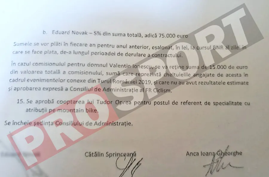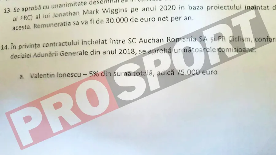 ProSport a intrat în posesia unor acte prin care șeful de atunci al FR de Ciclism și-a dat o primă de 75.000 de euro, în condiții în care salariul lunar era de 1.000 de euro.
