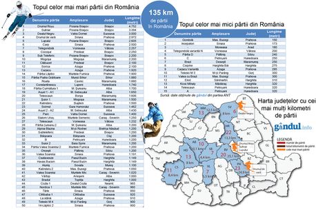 Gândul.info a obținut toate datele necesare de la Autoritatea Națională de Turism (ANT), din subordinea Ministerului IMM-urilor, Mediului de afaceri și Turismului și a realizat o infografie a celor mai mari pârtii din România.