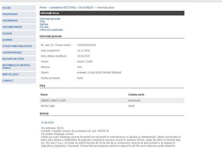 La al cincilea termen, pe 11 iunie, instanța de la Judecătoria Sectorului 1 a decis să respingă cererea lui Iosep, considerând-o neîntemeiată. Antrenorul a fost pus de judecător să plătească și cheltuielile de judecată ale lui Petru Ianc, în cuantum de 500 de lei. Sentința poate fi atacată cu apel la Tribunalul București.