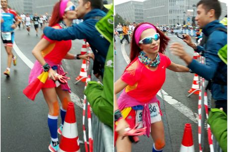 În ciuda costumului, alergătorul a reușit să termine cursa. Foto ProSport