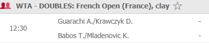 De asemenea, tot astăzi, duminică 11 octombrie, dar de la ora 12.30 se desfășoară finala feminină la dublu. Ieri s-a consumat finala feminină la simplu, Iga Swiatek devenind campioană la French Open.