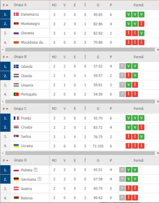 Meciurile decisive din grupele B (Islanda – Ungaria, Portugalia – Olanda) și D (Germania – Polonia, Austria – Belarus) se joacă azi.