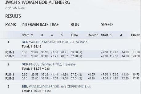 Următorul concurs al fetelor va fi între 23 februarie – 8 martie, Campionatul Mondial de bob, la seniori, ce va avea loc la Winterberg.