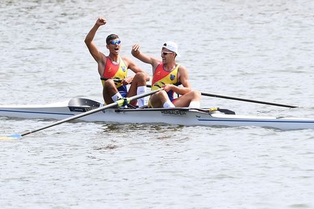 Delegația tricoloră s-a lipit de aur la prima finală A, în care au concurat băieții din echipajul de dublu rame. Florin Arteni-Fîntînariu și Laurențiu-Alexandru Danciu (foto jos) au făcut o cursă impecabilă, depășind favoritele finalei, echipajele din Germania și Croația, care au alternat la conducere trei sferturi din cursă. Pe ultimii 500 de metri, românii au atacat fantastic și s-au impus în 6:32,390, la numai o zecime de secundă în fața germanilor E. Kun și J. Angl. Florin Arteni-Fîntînariu și Laurențiu-Alexandru Danciu se pregătesc la Centrul Național de la Orșova, unde beneficiază de cele mai bune condiții.