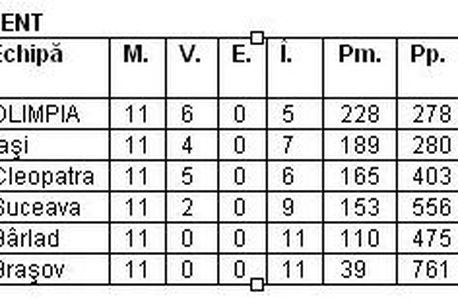 LEGENDĂ‚: M – meciuri, V – victorii, E – egaluri, Î – înfrângeri, Pm – puncte marcate, Pp – puncte primite, Pct. – puncte, Pb – puncte bonus.