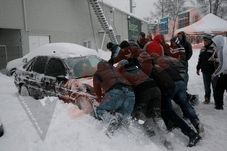 În jur de 200 de sportivi de la cluburile de rugby (Steaua, Dinamo, CSM, Colegiul Tehnic Material Rulant, Olimpia si Liceul Aurel Vlaicu) și baschet (Rapid, Dinamo, Steaua, CSM București) din București au demarat în această dimineață o campanie de deszăpezire a spitalelor și azilelor din capitală.