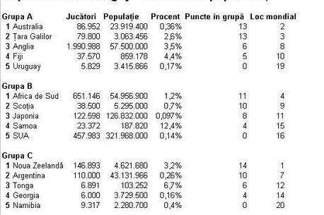 ProSport a căutat în spatele acestui val de optimism și a descoperit o realitate în contrast cu discursul oficial și pretențiile de ultimă oră. Centralizarea datelor oficiale și raportarea acestora la celelalte țări care participă la Mondialele din 2015 arată că victoria cu Canada a depășit deja cu mult condiția acestui sport în România. În fapt, toată construcția se bazează nu pe forța rugby-ului ca mișcare la noi în țară, ci pe o generație de sportivi foarte bună, la care Alin Petrache, fostul președinte al federației, ne-a mărturisit că s-a lucrat din 2009. Așadar, o reprezentativă cu jucători legitimați, mulți dintre ei, la cluburi din străinătate, care depășește cu mult condiția generală a acestui sport în România.