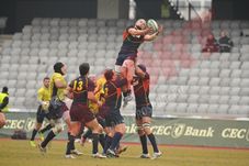 Anii au arătat că atunci când rugbyștii români își propun ceva sunt greu de oprit. Cu Spania și-au propus să obțină calificarea la Cupa Mondială din 2015, iar începutul e promițător: Vlaicu transformă două lovituri de pedeapsă (‘6, ’19) și face 6-0. Spaniolii revin cu decarul Malie, care pune trei puncte pe tabelă și urmează 15 minute mai liniștite. Imediat vine apropierea românilor de primul eseu, dar prima dată se dau semne de luptă, iar sportivii încep o scurtă încăierare. În sportul fair-play-ului însă, aceste lucruri se uită repede, meciul revine la normal, iar „Stejarii” fac ce au așteptat toată repriza: punctează printr-un eseu de penalitate, iar Vlaicu reușește transformarea: la final de repriză e 13-3.
