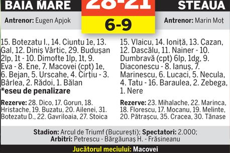 prelungiri Steaua cu 28-21 (6-9, 18-18, 21-21).