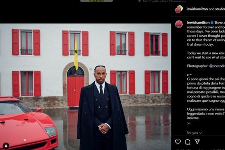 La sosirea în Italia, Hamilton a postat și un mesaj pe rețelele de socializare alături de o fotografie în care se afișează lângă o mașină Ferrari în fața casei Scuderiei.