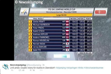 Grație locului doi obținut luni, Hayboeck trece pe primul loc în clasamentul general, adunând cu un punct mai mult decât norvegianul Andreas Fannemel.