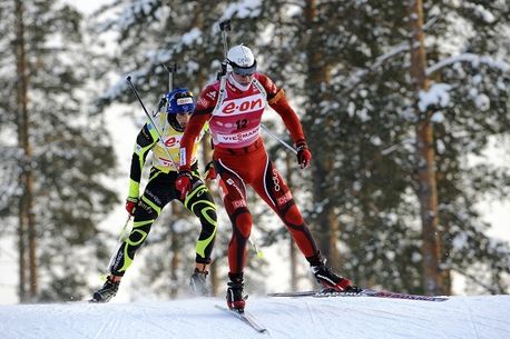 În proba masculină, favoriții s-au anulat reciproc după ratări în primele două treceri prin poligon. Astfel, Martin Fourcade (foto sus, în spate), liderul Cupei Mondiale, nu a terminat decât pe locul zece, cu două ratări, chiar în spatele fratelui său, Simon. Francezul, care păstrează 93 de puncte în fața lui Emil Hegle Svendsen (foto sus, prim-plan) în clasamentul general al Cupei Mondiale, a ratat astfel șansă să egaleze performanța Torei Berger și să devină primul biatlonist care câștigă o medalie în toate probele de la Campionatul Mondial. Nici Svendsen nu a intrat în istorie, terminând pe locul trei și ratând șansa de a deveni primul biatlonist cu cinci medalii de aur la o ediție de Campionat Mondial. În schimb, aurul a fost câștigat de Tarjei Bo, norvegianul care nu a ratat niciun foc și s-a impus cu 3,7 secunde în fața rusului Anton Șipulin și cu 7,4 secunde în fața lui Svendsen. Bo, câștigătorul Cupei Mondiale de acum doi ani, a câștigat prima cursă din acest sezon.