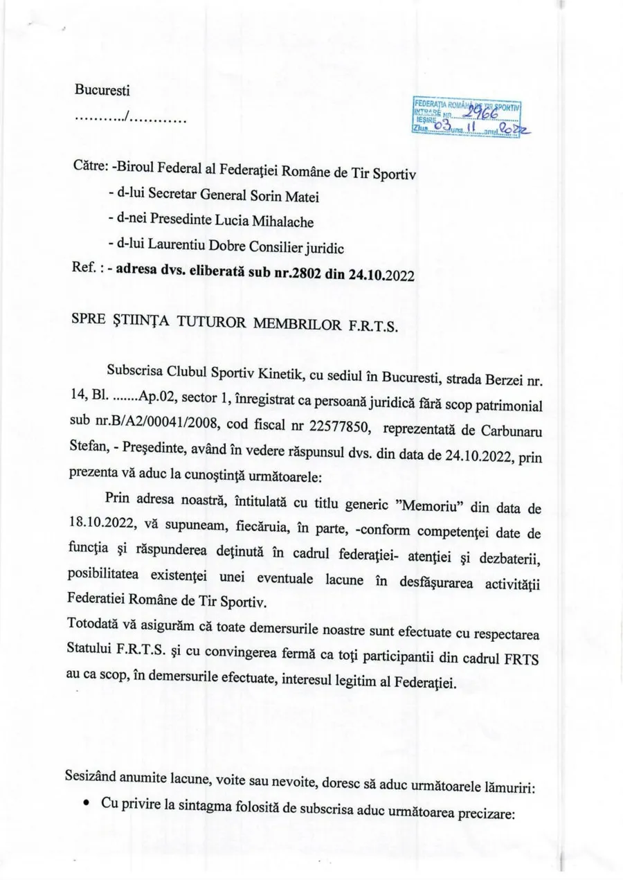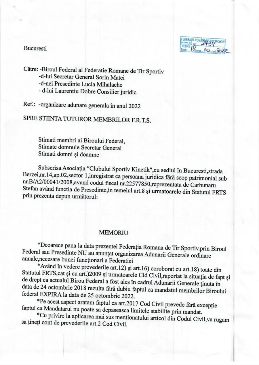 O altă anomalie de la Federaţia Română de Tir Sportiv este reprezentată de faptul că Biroul Federal are mandatul expirat de aproape două luni.