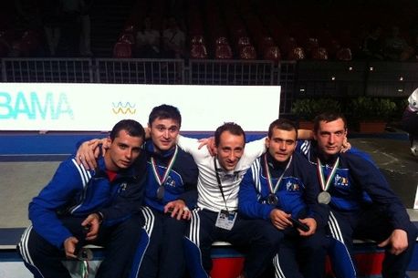 5 medalii a obținut echipa masculină de sabie la Campionatele Europene. Un aur (Izmir 2006), trei de argint (Bolzano 1999, Plovdiv 2009, Legnano 2012) și un bronz (Zalaegerszeg 2005)