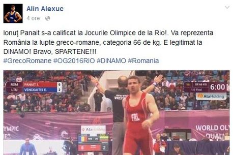 Ion Panait (lupte greco-romane) a obținut vineri biletul pentru Jocurile Olimpice de la Rio, după ce a acces în finala turneului mondial de calificare de la Ulan Bator (Mongolia). Prezența în finala respectivei competiții îi asigură lui Panait calificarea la JO de la Rio 2016, în concursul categoriei 66 de kg!