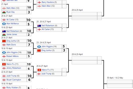 În primul tur al Mondialului din acest an, Mark Selby și-a arătat limitele, însă a reușit să se califice in-extremis, după ce a câștigat ultimele două frame-uri în fața debutantului Kurt Maflin. În teorie, tabloul îl avantaja pe campionul mondial de anul trecut, primul adversar cu adevărat puternic putând fi Shaun Murphy, în sferturile de finală ale competiției. Dar până să câștige biletele pentru „top 8”, Selby trebuia să treacă de Anthony McGill. Tânărul scoțian de 24 de ani era și el câștigător tot cu 10-9 în primul tur, în fața mult mai experimentatului conațional Stephen Maguire.