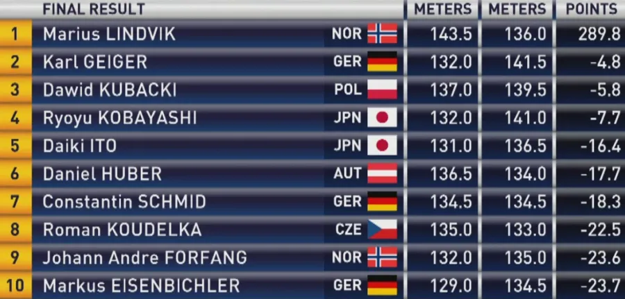 Nimeni nu a anticipat victoria lui Lindvik, în condițiile în care el a fost doar pe locul 10 în prima etapă la Obertsdorf, iar în Cupa Mondială a avut ca rezultat de vârf un loc 3 la Klingentahl (Germania).