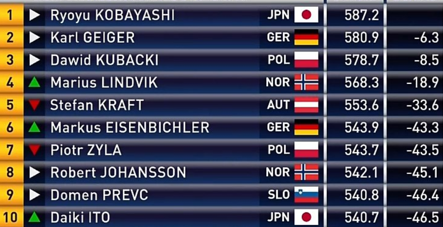 Între primii patru clasați în concursul de la Garmisch se va da, foarte probabil, și lupta pentru trofeu în Turneul celor Patru Trambuline în acest sezon. Ryoyu Kobayashi este în continuare lider, dar lupta la vârf s-a mai echilibrat: