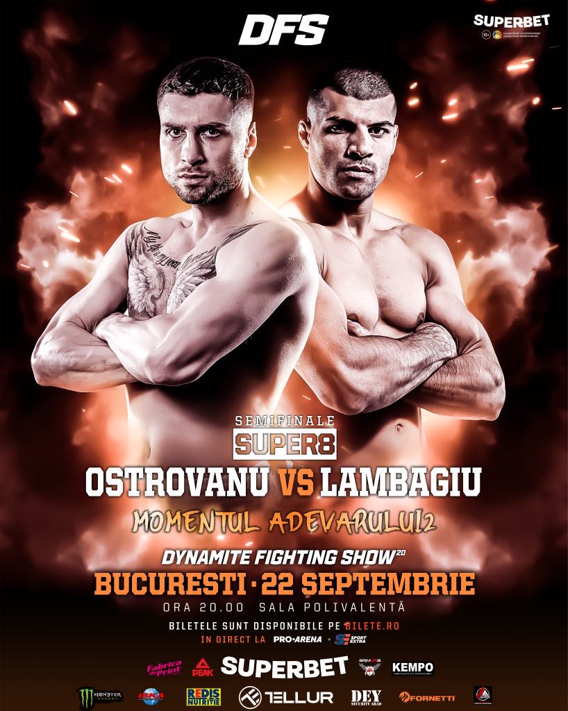 Meciul dintre Andrei Ostrovanu și Florin Rambo Lambagiu va conta pentru semifinalele Turneului Super8. Câștigătorul va lupta pentru centura de campion DFS cu învingătorul dintre Eduard Gafencu și Ștefan Orza.