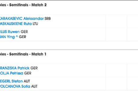 Germania are două echipe calificate în semifinalele probei de dublu mixt, Austria o echipă, în timp ce al patrulea loc în careul de ași a fost adjudecat de o pereche sârbo-lituaniană.