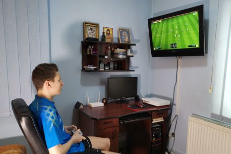 Pandemia l-a prins pe sportiv la Târgoviște, unde de mai bine de două luni nu se abate de la un program strict. Are câte două ore și jumătate de antrenament pe zi, în mansarda casei, unde și-a adus un robot care îi este partener de pregătire, cursuri pentru școală și un cantonament online cu cei de la Federația Europeană de Tenis de masă.