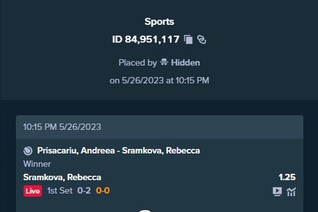 Un pariu uriaș de 1,3 milioane de dolari a fost plasat pe meciul dintre românca Andreea Prisacariu (342 WTA) și slovaca Rebecca Sramkova (238 WTA).