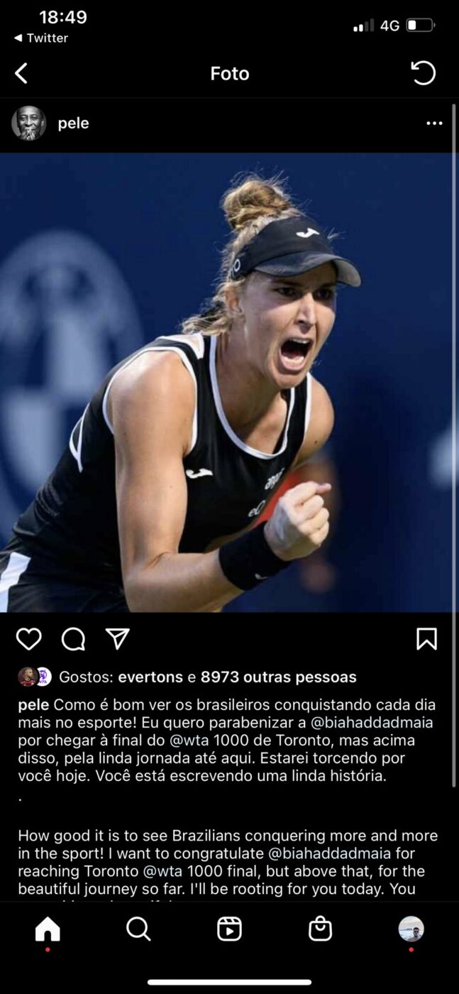 Vreau să o felicit pe Beatriz Haddad-Maia pentru că a ajuns în finala Toronto WTA 1000, dar mai presus de asta, pentru călătoria frumoasă de până acum. O să te susțin astăzi! Scrii o poveste frumoasă!”, a fost mesajul spectaculos transmis de Pele pe rețelele de socializare.