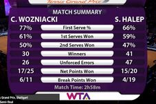 Singurele capitole la care Simona a fost mai bună în semifinala de la Stuttgart au fost loviturile câștigătoare, 41-30, și procentajul punctelor reușite la fileu (15 din 20 față de 17 din 25 de veniri la plasă ale Carolinei). Raportul greșelilor neforțate a fost însă zdrobitor (26 Caroline și 47 Simona)