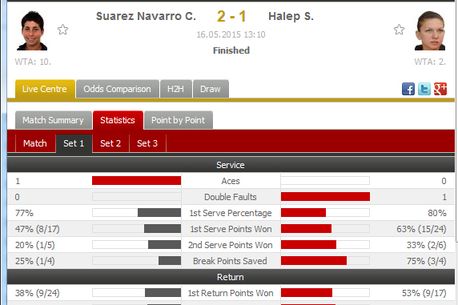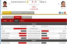 În acest interval de 29 de minute al primului set, Simona a controlat meciul, a avut încredere – totul pornind de la un procentaj uriaș la primul serviciu: opt din zece puncte începute cu prima minge. Surprinzător însă, serviciul, prin procentajul la prima minge, „vinovatul de serviciu” pentru Simona de regulă, nu a fost deloc răspunzător pentru ceea ce a urmat.