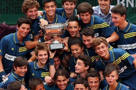 Trofeul share-uit, la propriu. O fotografie de colecție a copiilor de mingi alături de Rafael Nadal, la capătul finalei din 2013. Nadal le-a dat în grijă trofeul cel mare puștilor, imaginea fiind postată pe site-ul oficial al turneului parizian.