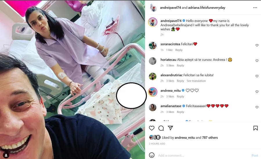 Sorana Cîrstea i-a transmis felicitări lui Andrei Pavel, în timp ce iubitul jucătoarei de tenis, Ion Țiriac Jr., a scris: „Felicitări, să fie iubită”. Horia Tecău a postat și el un mesaj în secțiunea de comentarii: „Abia aștept să te cunosc, Andreea!”.