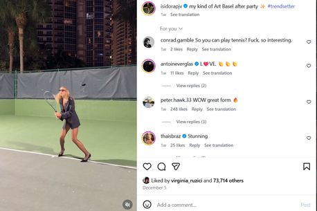 Isidora a adunat peste 80.000 de urmăritori pe Instagram după ce a început să publice videoclipuri în care prezintă lecții de tenis într-o manieră neconvențională, purtând ținute elegante și pantofi cu toc.