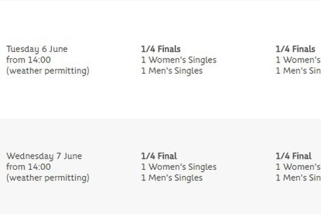 Conform programului oficial al turneului, dat publicității încă dinaintea începerii competiției de la Paris, ultimele două sferturi de finală de pe tabloul feminin sunt programate miercuri, 7 iunie, începând cu ora 15:00, pe arenele Philippe Chatrier, respectiv Suzanne Lenglen, singurele modificări putând să apară în funcție de starea vremii.