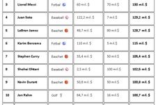 Când spunem fotbal, ne referim la soccer, căci niciun practicant de fotbal american nu a răzbit în Top 10, deși sportul cu mingea ovală e bine reprezentat în Top 50/100. Apropo de un alt sport american cândva strălucitor, care tocmai a luat medalia de aur la Olimpiada de iarnă: niciun hocheist în Top 100!