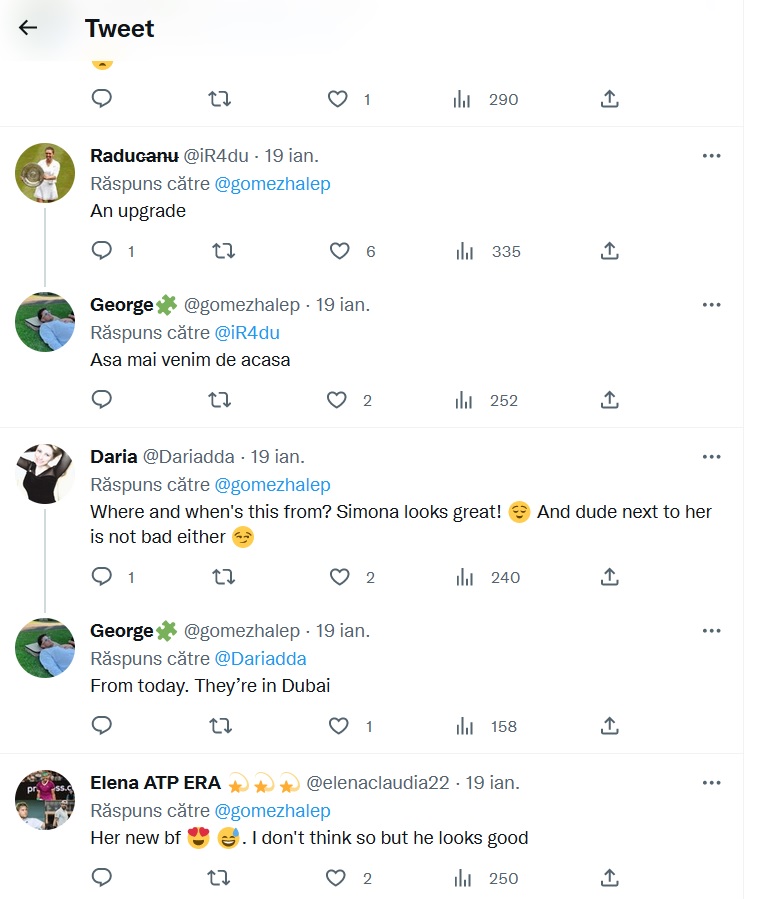 Simona Halep s-a fotografiat alături de bărbatul francez, în timpul unei plimbări prin Dubai, oferindu-le fanilor un motiv de speculații. Cei care speră că „Simo” își va reface viața cât mai repede după divorțul de Toni Iuruc au avut câteva comentarii savuroase după apariția imaginii cu Halep și Cosmao.