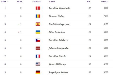 Simona Halep nu a revenit încă pe primul loc, însă este sigură că va face rocada cu liderul Caroline Wozniacki peste o săptămână. Constănțeanca, întrecută cu doar 45 de puncte de Wozniacki, îi va lua fața danezei care pierde 585 de puncte după turneul de la Dubai. Astfel, în Top 10 s-au produs, deocamdată, doar două modificări: Muguruza a devansat-o pe Svitolina și a urcat pe 3 WTA, în timp ce Kvitova a revenit în elită după ce a câștigat titlul de la Doha.