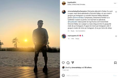 Sabin Topală a postat recent o fotografie spectaculoasă de pe faleza din Dubai, iar campioana tenisului i-a dat like imediat omului din echipa ei. În luna ianuarie, Sabin și-a sărbătorit ziua de naștere la un restaurant, alături de Simona, semn că cei doi se înțeleg excelent și în afara antrenamentelor.