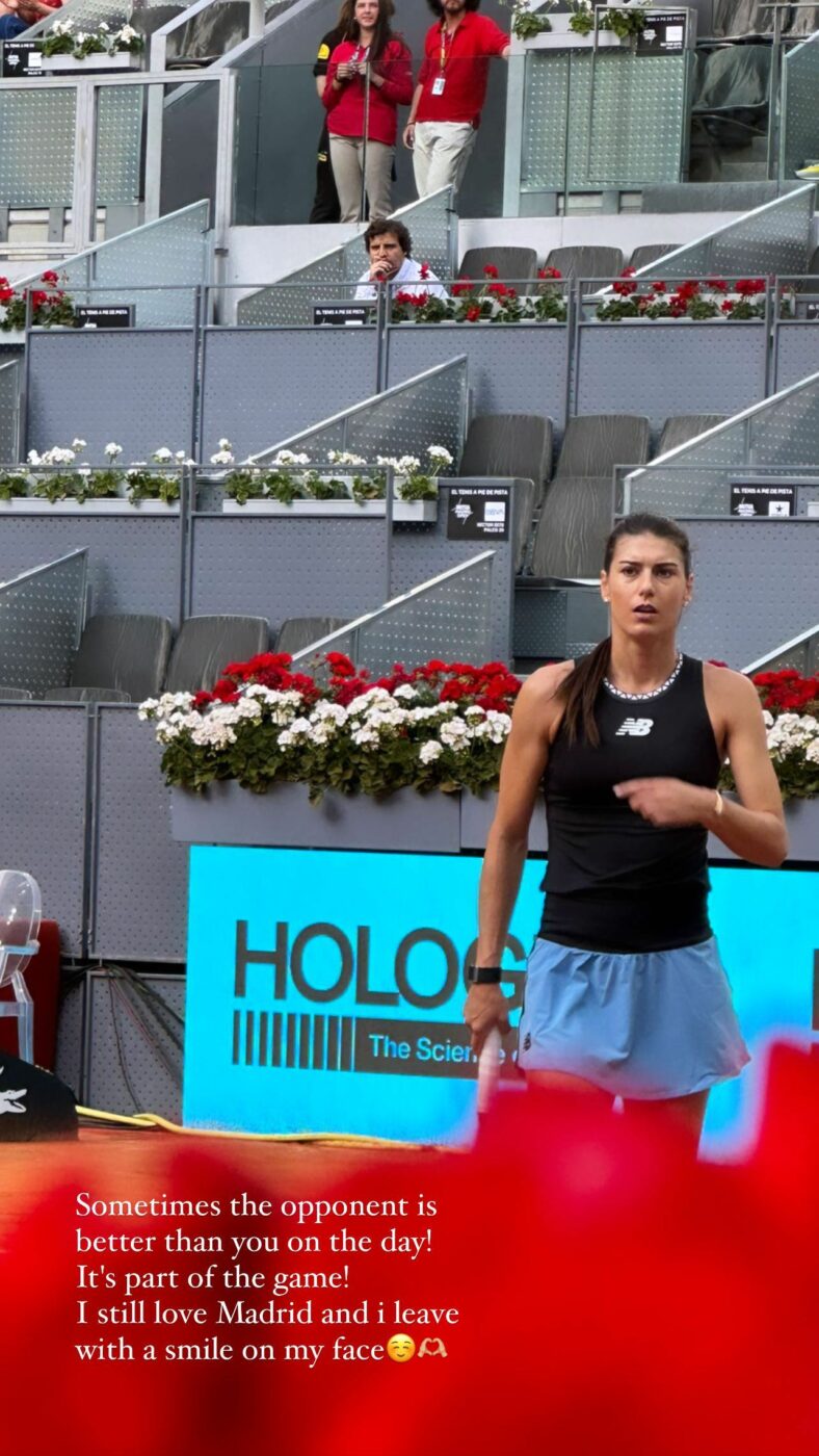 După meciul cu bielorusa, Sorana Cîrstea le-a transmis un mesaj fanilor, spunând că „ adversara poate fi, uneori, mai bună”: „Uneori, adversara e mai bună decât tine în ziua respectivă. Face parte din joc. Încă iubesc Madridul și plec de aici cu un zâmbet larg”, a scris Cîrstea pe contul ei de Instagram. Pentru româncă urmează turneul WTA 1000 de la Roma, în perioada 9 – 20 mai.